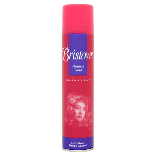 Bristows Natural Hold Hairspray gives natural, flexible control. It leaves your hair beautifully manageable and soft to the touch with no sticky residue. Brushes out easily