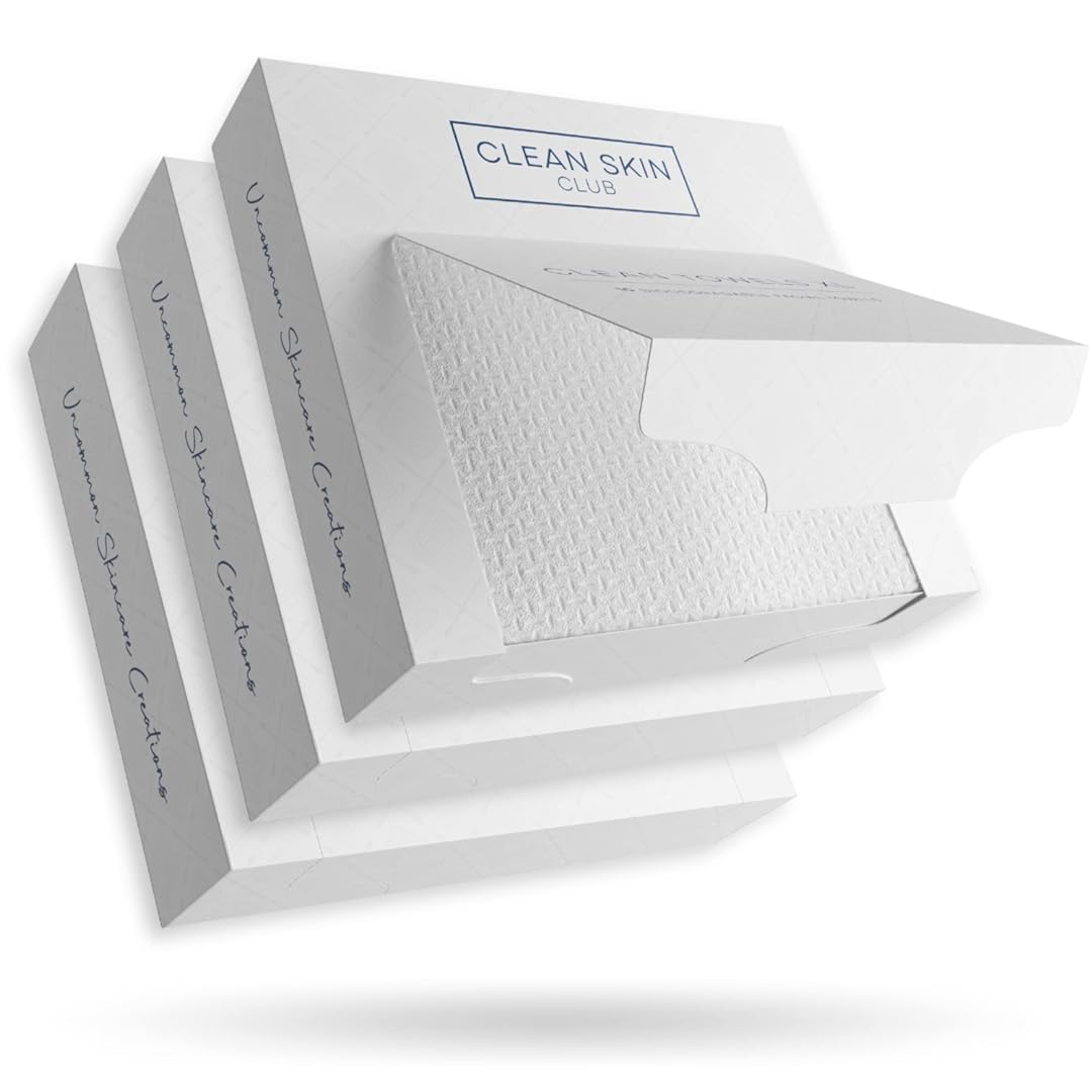 Clean Skin Club Clean Towels XL, 100% USDA Biobased Dermatologist Approved Face Towel, Disposable Clinically Tested Face Towelette, Facial Washcloth, Makeup Remover Dry Wipes, 3 Travel Pack, 30 ct