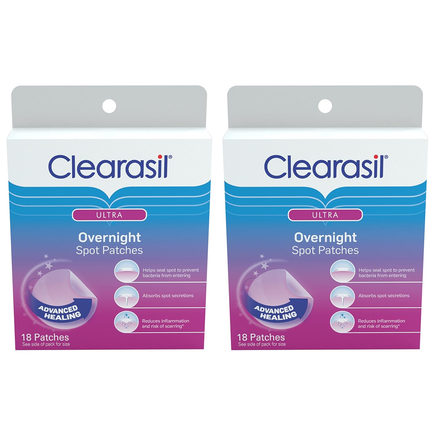 Clearasil Overnight Spot Patches, Advanced Healing Hydrocolloid Acne Pimple Treatment, Blemish Spot Stickers for Face, 18 Count (Pack of 2)
